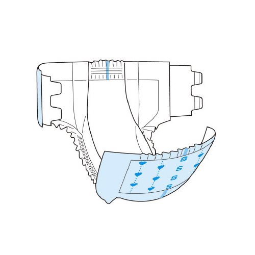 重ねて貼れる幅広テープ。テープ同士を重ねて止められるので、どんな体型の型にも無理なくフィット。吸収体にあるパッドサポート機能で、パッドをズレないようにすることで、股モレを防止します。
