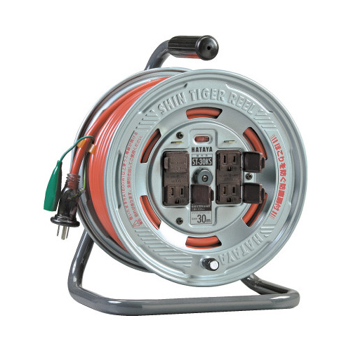 屋内用コードリール。接地付、防塵扉付き。温度センサー付きの安心設計。