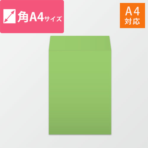 A4が入る大きさの角A4号封筒。使いやすいグリーンです。