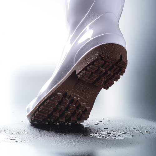 厨房・水場で滑りにくいハイグリップ抗菌長靴。特殊配合の材料と特殊な靴底のハイグリップソールのため、転倒防止に役立ちます。