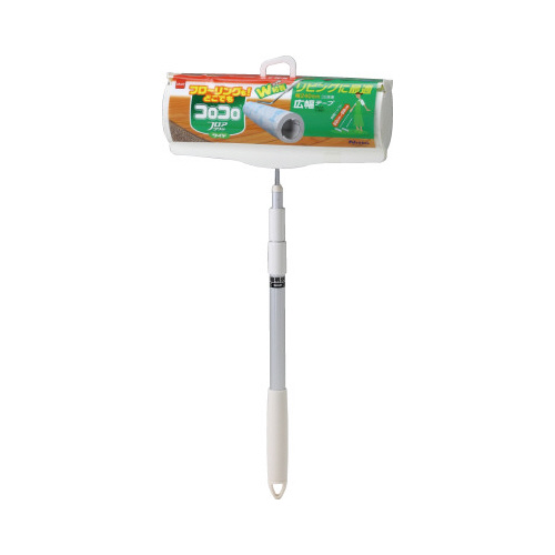 強弱のW粘着テープで、フローリングやカーペット、たたみ、ビニール床にも使えます!通常品の1.5倍ワイドの広幅テープで、広範囲でもラクラク!片手でサッと取り出しできる、ケース付き。
