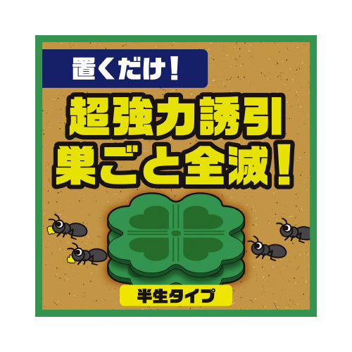 いろいろなアリが好むこだわりの駆除エサを巣に持ち帰って巣ごと全滅。耐水仕様で屋外にも置きやすい。4袋セット。