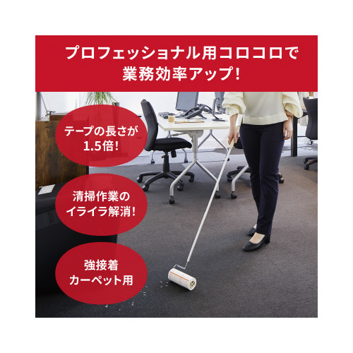 1.5倍巻きでより便利になったコロコロリニューアルシリーズ!スカットカット入りでより切り取りやすく作業性が向上されました。強・弱のダブル粘着で様々な床に使えるマルチタイプです。