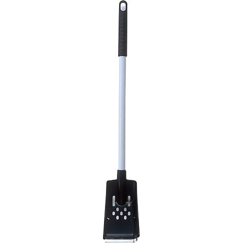 シャベル先端の左右を角型、丸型にしたので、直角型の溝も、U型の溝にもフィットします。シャベルについた水切り穴から水気が落ち、ゴミや泥だけをすくい取ります。側溝のドブさらいや溝のゴミ取りに。