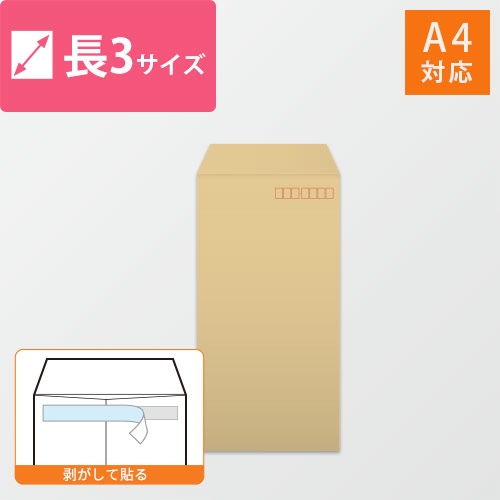 A4(3つ折)が入る大きさの長3号封筒。使いやすいクラフト色です。