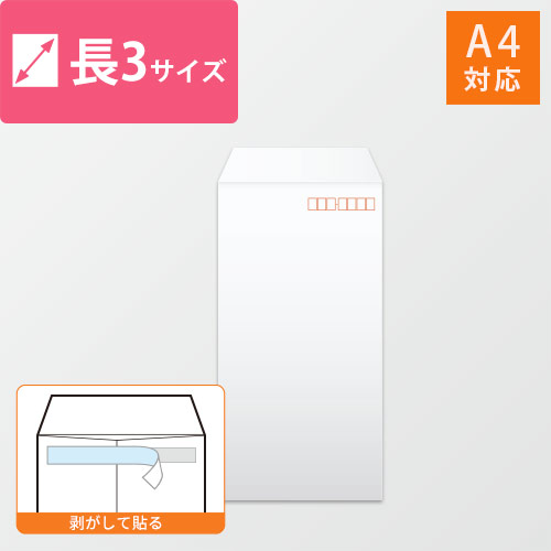A4(3つ折)が入る大きさの長3号封筒。使いやすいホワイトです。