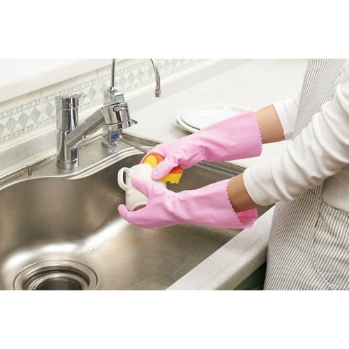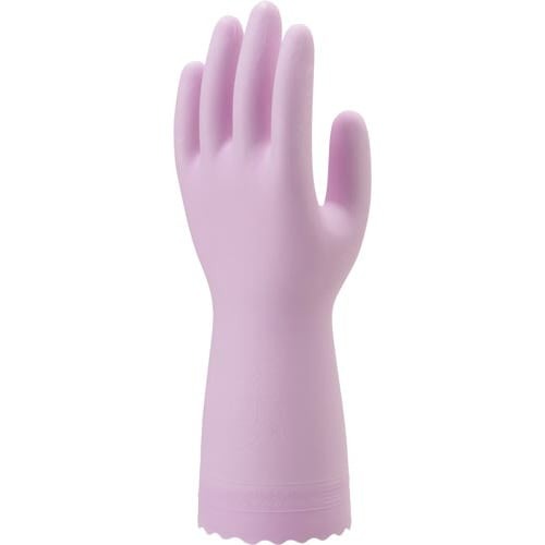 傷つきやすい指先を強化した家事や清掃作業等におすすめのやわらかい薄手の塩化ビニール製ゴム手袋です。