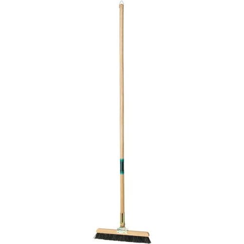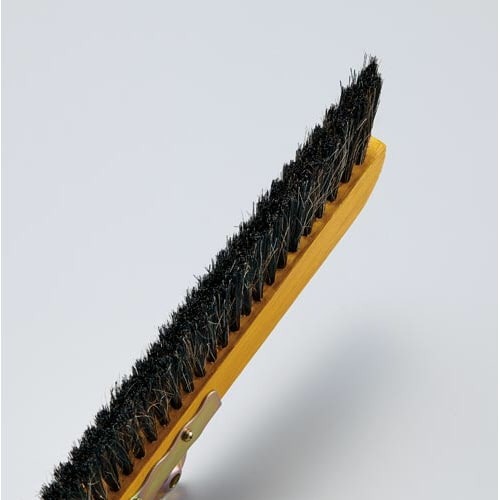 柄が180度自在に動いて毛先が清掃面にしっかりフィット、細かなゴミもしっかり掃けます。毛足が短くホコリを舞い上げずに掃き掃除できます。手になじみやすく、寒い日や寒冷地でも握りやすい木柄タイプ。