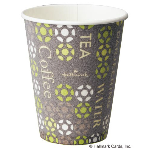 ホールマーク社デザイン。カップ表面にフィルムの気泡層があるので中の飲み物の温度を手に伝えにくく、持って熱く感じにくいカップです。