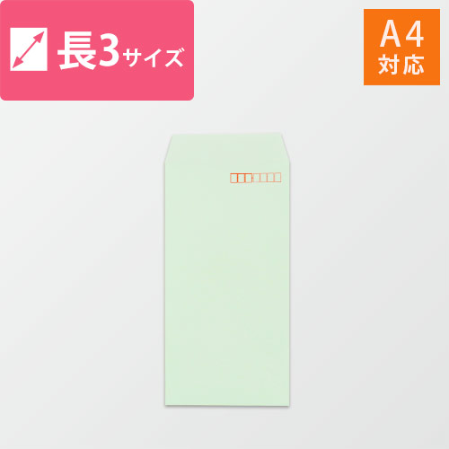 A4(3つ折)が入る大きさの長3号封筒。使いやすい薄緑色です。