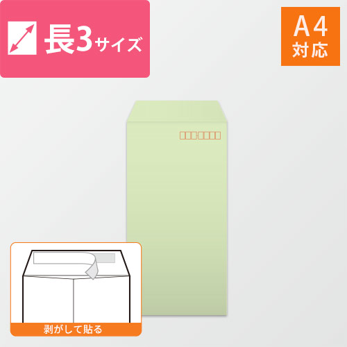 A4(3つ折)が入る大きさの長3号封筒。使いやすいウグイス色です。