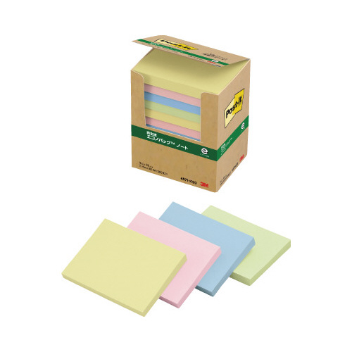 ポストイット 再生紙ノート75×100 混色24冊