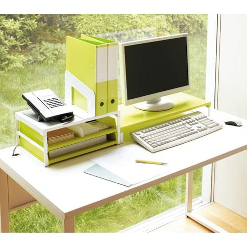 デスクの上をすっきり整理。机上台を使えば有効スペースがアップします。