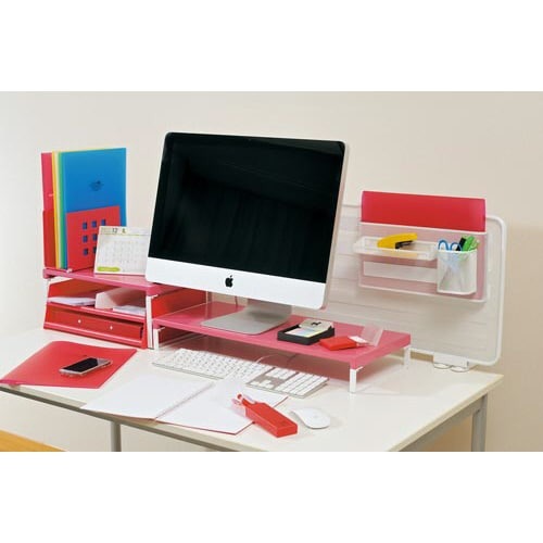 デスクの上をすっきり整理。机上台を使えば有効スペースがアップします。