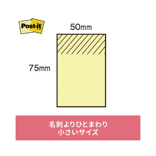 たっぷり入ってお得な通常粘着エコノパック製品。オフィスでの買い置きにおすすめ。名刺よりひと回り小さいサイズ。資源の有効利用を考え、古紙パルプ配合率100%の再生紙を使用しています。