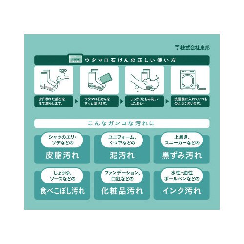 通常の洗濯では落ちにくい「ガンコな汚れ専用」の部分洗い用石けん。素材から製法まで、全てを汚れ落としに最適なもので選び抜いて作りました。あきらめていたガンコな汚れが洗濯前のひと手間で、驚くほど真っ白に。