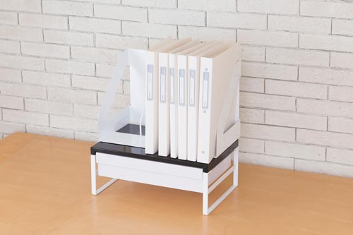 デスクの上をすっきり整理。机上台を使えば有効スペースがアップします。引き出し付きでさらに便利に!