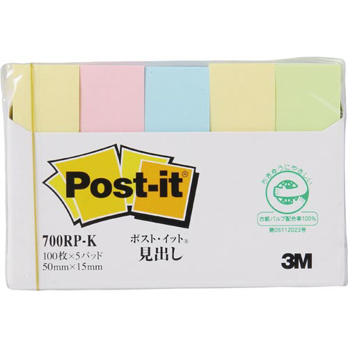 ポストイット 再生紙見出し 50×15 混色 5冊