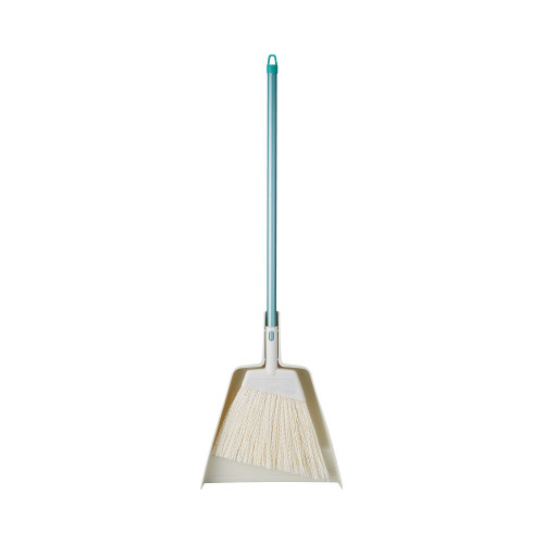 化繊タイプのほうきで濡れたゴミもしっかり掃ける。チリトリセットで自立もできスマートに収納。