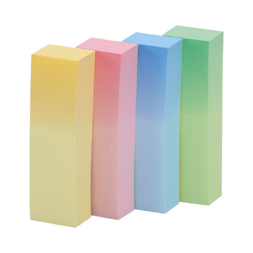 くり返し貼ったりはがしたりできるポストイット通常粘着製品です。上品なグラデーションカラー。見出しに便利なサイズ。資源の有効利用を考え、古紙パルプ配合率100%の再生紙を使用しています。