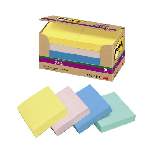 つきにくかった樹脂面にもしっかり貼れて、きれいにはがせる強粘着タイプのポストイット。手軽に使えて書き込みしやすい50mm角。文字が見やすいパステルカラー。たっぷり入ってお得なエコノパック。