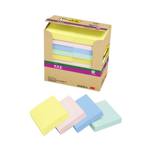 つきにくかった樹脂面にもしっかり貼れて、きれいにはがせる強粘着タイプのポストイット。手軽に使えて書き込みしやすい50mm角。文字が見やすいパステルカラー。たっぷり入ってお得なパワーパック。