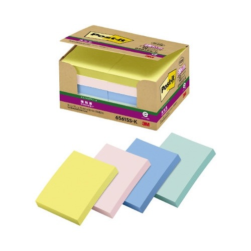 つきにくかった樹脂面にもしっかり貼れて、きれいにはがせる強粘着タイプのポストイット。名刺サイズよりも一回り小さい長方形サイズ。文字が見やすいパステルカラー。たっぷり入ってお得なエコノパック。