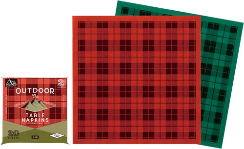 テーブルやシーンを美しく彩ります。アウトドアシーンに自然に溶け込むカラーとデザインで用途がひろがります。装飾やラッピングにも便利。二枚重ねで丈夫、ふんわりやさしい質感です。安心の国内工場生産。
