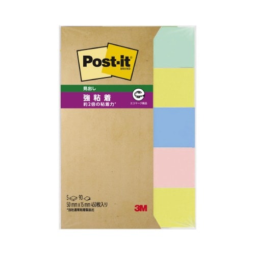 つきにくかった樹脂面にもしっかり貼れて、きれいにはがせる強粘着タイプのポストイット。手帳やマーキングに便利なミニサイズ。文字が見やすいパステルカラー。混色5冊パック。