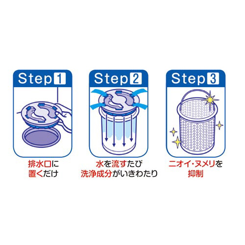 排水口に置くだけで、水を流すたびに除菌、ヌメリ・ニオイをしっかり予防。排水口全体をきれいに保ちまる。安心の中性タイプで、効果が約60日間持続します。