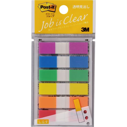 貼っても下の文字などが透けて見え、また貼った上から字を書くこともできる、つや消し加工フィルムふせんです。破れたり折れたりしにくく、繰り返して使用できます。6色セットで、色分けにも便利です。