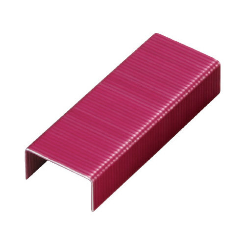 失敗とじが少ない、マックス針の「先端技術」。針の素材を生かしたメタリックな仕上がりです。針の色で書類を分類できます。