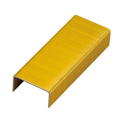 失敗とじが少ない、マックス針の「先端技術」。針の素材を生かしたメタリックな仕上がりです。針の色で書類を分類できます。