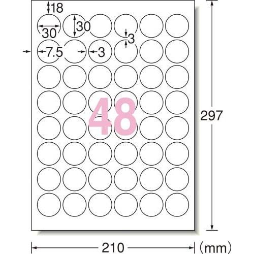 各種プリンタ兼用で印刷できる、厚口の上質紙を使ったラベルシールです。白色度が高くラベルにコシがあります。丸型なのでパッケージラベル、ギフトシール、ラッピングシール作成におすすめです。