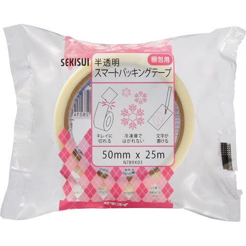 様々なシーンで使い勝手のよい手切れ性に優れたテープです・手でまっすぐ切れ糸残りしにくく、梱包の仕上がりが綺麗です・油性ペンで文字が書けます・常温で貼った後、冷凍庫で保管しても粘着力は変わりません
