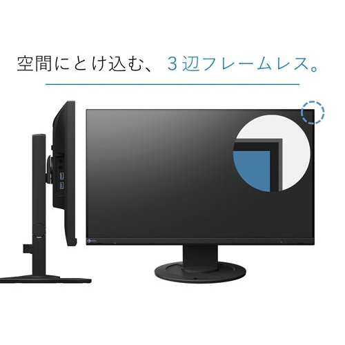 【安心の国産5年保証】【縦回転対応】3辺フレームレスのすっきりしたデザイン。明るさ自動調整やブルーライトカットなど、目にやさしい機能を多数搭載。スタンド調整幅も広く、一人一人に最適な位置に設置可能。