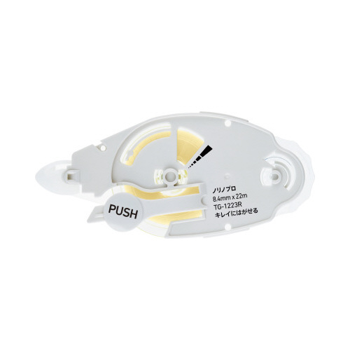 ヘビーユーザー向けの本格派。22mのロングテープ、たるみ防止のパワーギアとクリーンローラー搭載で長ーく使える。キレイにはがせる、貼り直し可能なタイプ。ノリノプロ専用カートリッジ。