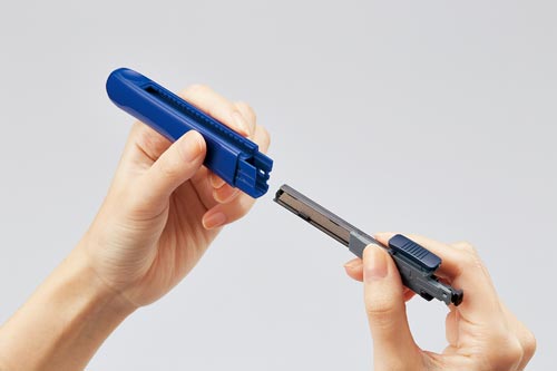 折らずに長持ち!あんぜん替刃で刃に触れることなく交換・廃棄が可能。スライダーとキャップの動きを固定するチャイルドロック付き。凹凸表面加工刃&フッ素コート加工刃。