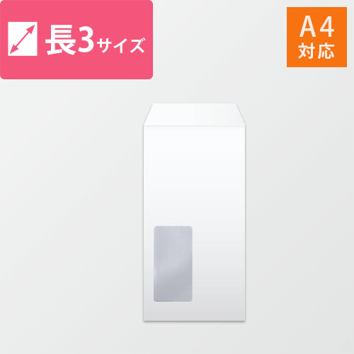A4(3つ折)が入る大きさの長3号封筒。使いやすいホワイトです。