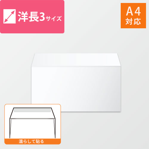 A4(3つ折)が入る大きさの洋長3号封筒。使いやすいホワイトです。