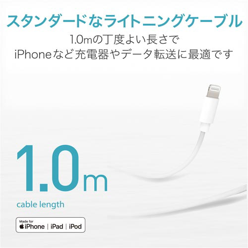 Lightningコネクタ搭載のiPhone/iPod/iPadの充電・データ通信ができる!パソコンやAC充電器のUSBポートを接続して充電・データ通信ができるUSBケーブル。