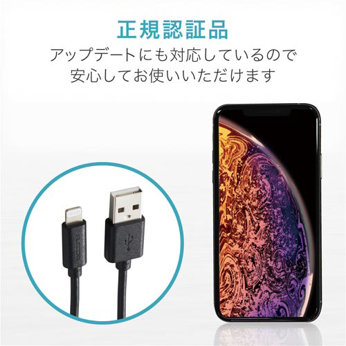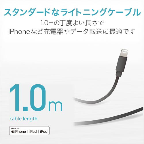 Lightningコネクタ搭載のiPhone/iPod/iPadの充電・データ通信ができる!パソコンやAC充電器のUSBポートを接続して充電・データ通信ができるUSBケーブル。