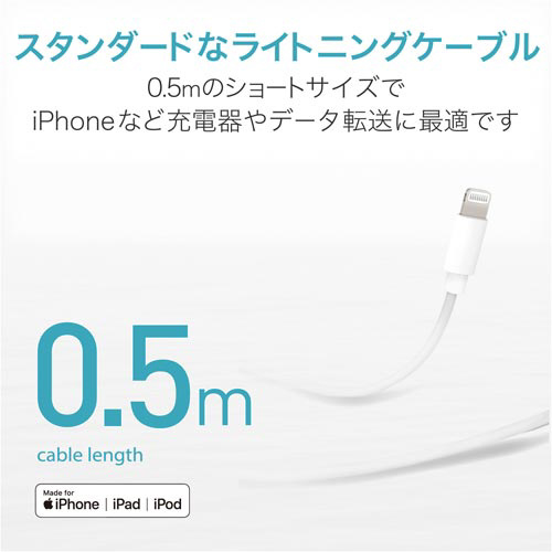 Lightningコネクタ搭載のiPhone/iPod/iPadの充電・データ通信ができる!パソコンやAC充電器のUSBポートを接続して充電・データ通信ができるUSBケーブル。