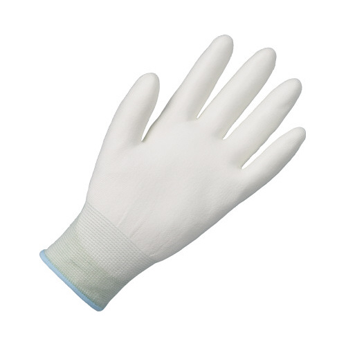 従来の約2倍の強度を持つポリウレタンをコーティングし、摩耗強度が向上し丈夫。粘着テープが付着してもコーティングがはがれにくい。手袋からのホコリや糸くずが少ない。