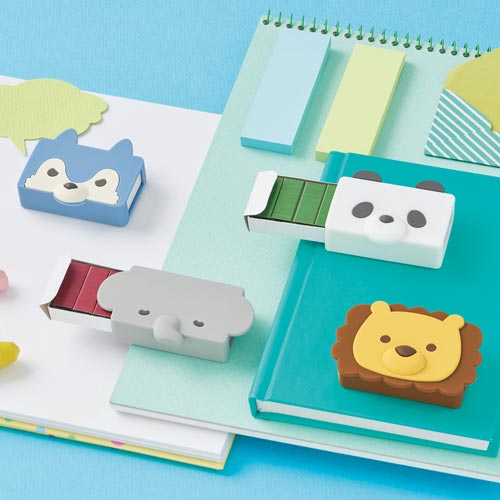 マックスのホッチキス針を箱ごと収納して使えるかわいいケース付きのカラー針。「りくちのいきもの」をテーマにしています。同時発売のホッチキスと合わせればデスクの上がさらに楽しい!