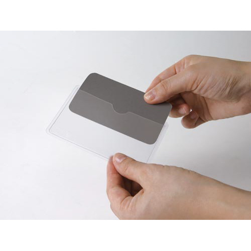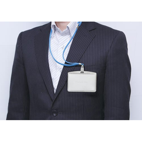 ゲスト用やイベント等で複数人使いまわすには抗菌吊下げ名札がおすすめ!クリップがついているので、ポケットなどお好きな場所に固定できて便利。チャック無しでカードの出し入れがしやすい!