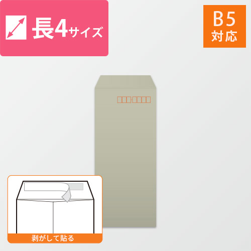 B5(4つ折)が入る大きさの長4号封筒。使いやすいグレーです。