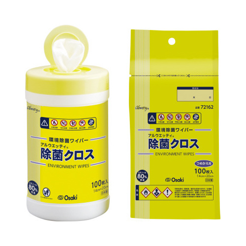 厚手の不織布に除菌に最適なエタノール80%を含浸させた環境清拭クロスです。