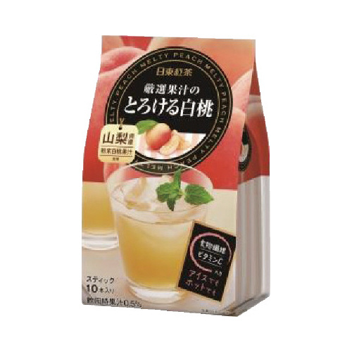 山梨県産の粉末白桃果汁を厳選使用。こころとろけるようなやさしく澄んだ香りと上品な甘み、爽やかな余韻をお楽しみいただけます。