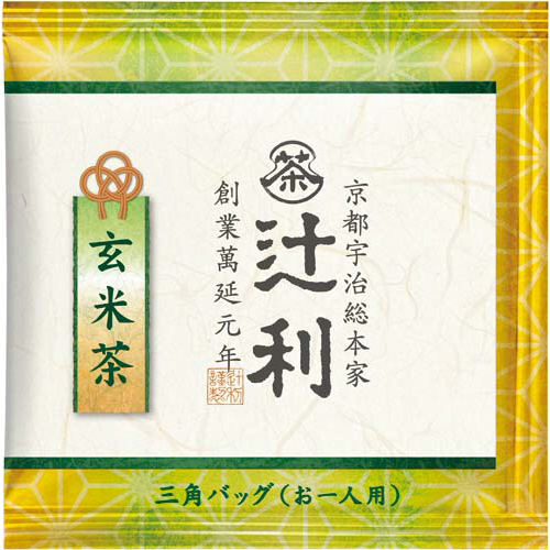 京都宇治の茶匠、辻利が誇る銘茶の美味しさを三角バッグに。炒り米の香ばしさが引き立つ味わいです。